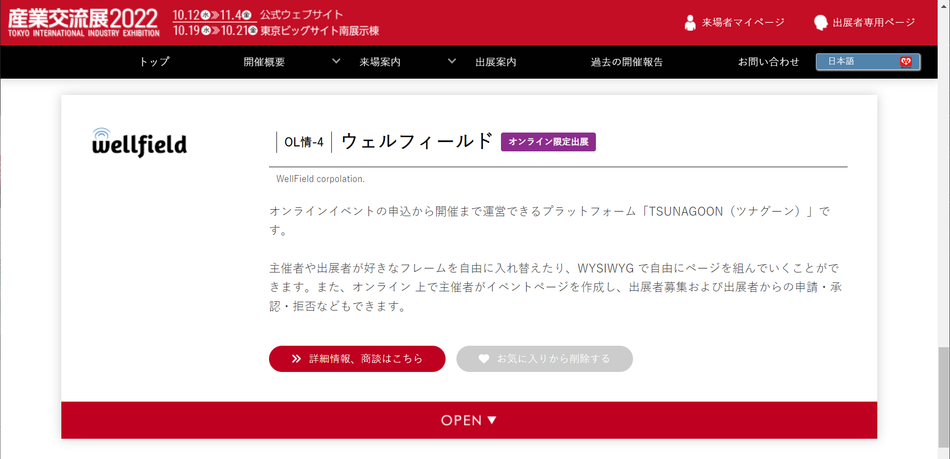 10月12日(水)からスタートしている「産業交流展2022」のオンライン展示会に出展しています。