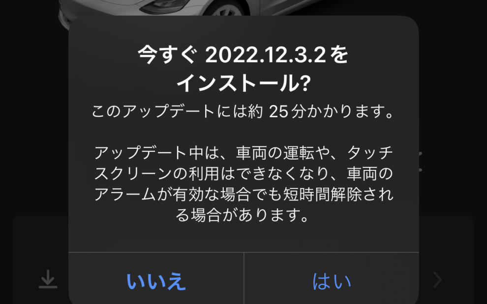 テスラのソフトウェアアップデート(2022.12.3.2)を適用してみました。