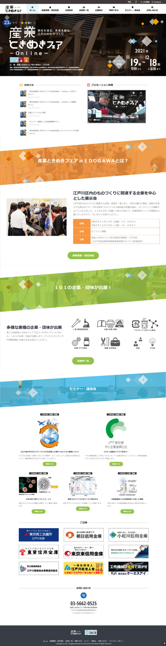 また、産業ときめきフェアの雰囲気が伝わるように写真だけでなく、「映像」も活用し、江戸川区の産業展としての価値が高まるサイトを目指しました。