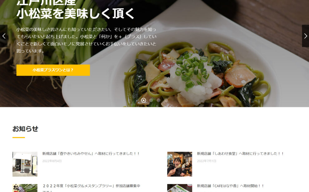 8月122022 江戸川区特産小松菜PRサイト「小松菜プラスワン」構築 WordPress, ホームページ制作, 地域プロモーション2022年8月12日 江戸川区小松菜PRサイトをワードプレス(… 続きを読む