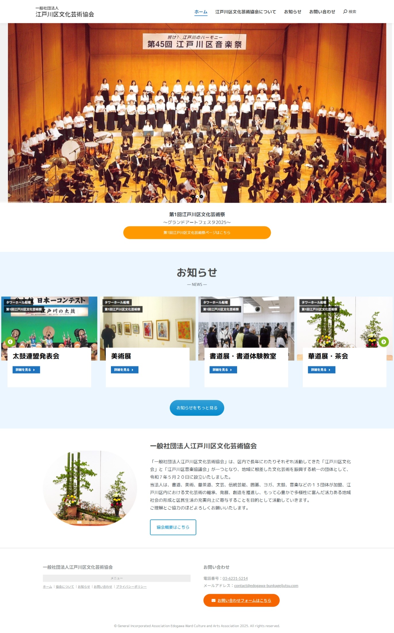 「一般社団法人江戸川区文化芸術協会」が新設されるにあたり、スタートアップのホームページを制作させていただきました。