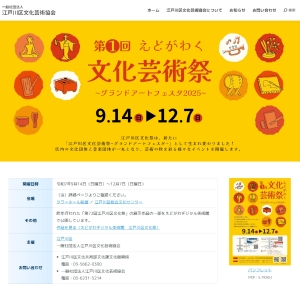 本サイトでは、江戸川区で活躍する文化芸術に関わる加盟団体のイベント情報を発信するとともに、秋に実施される文化芸術祭の特設ページも設置し、情報を発信しています。