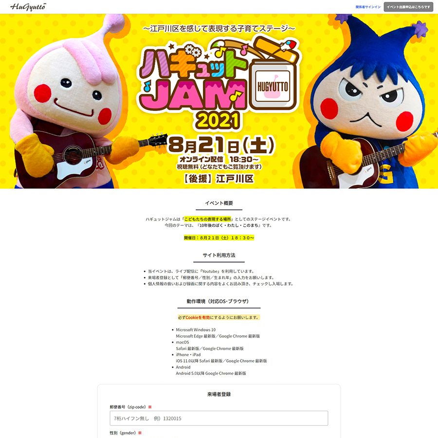 江戸川区の新製品助成金の対象となったオンラインプラットフォーム『TSUNAGOON(ツナグーン)』を利用したオンライン配信イベント。地方に住んでいる祖父母・親戚にも見てもらえる、こども達の発表の場として多くの人たちへ配信できるツール。
